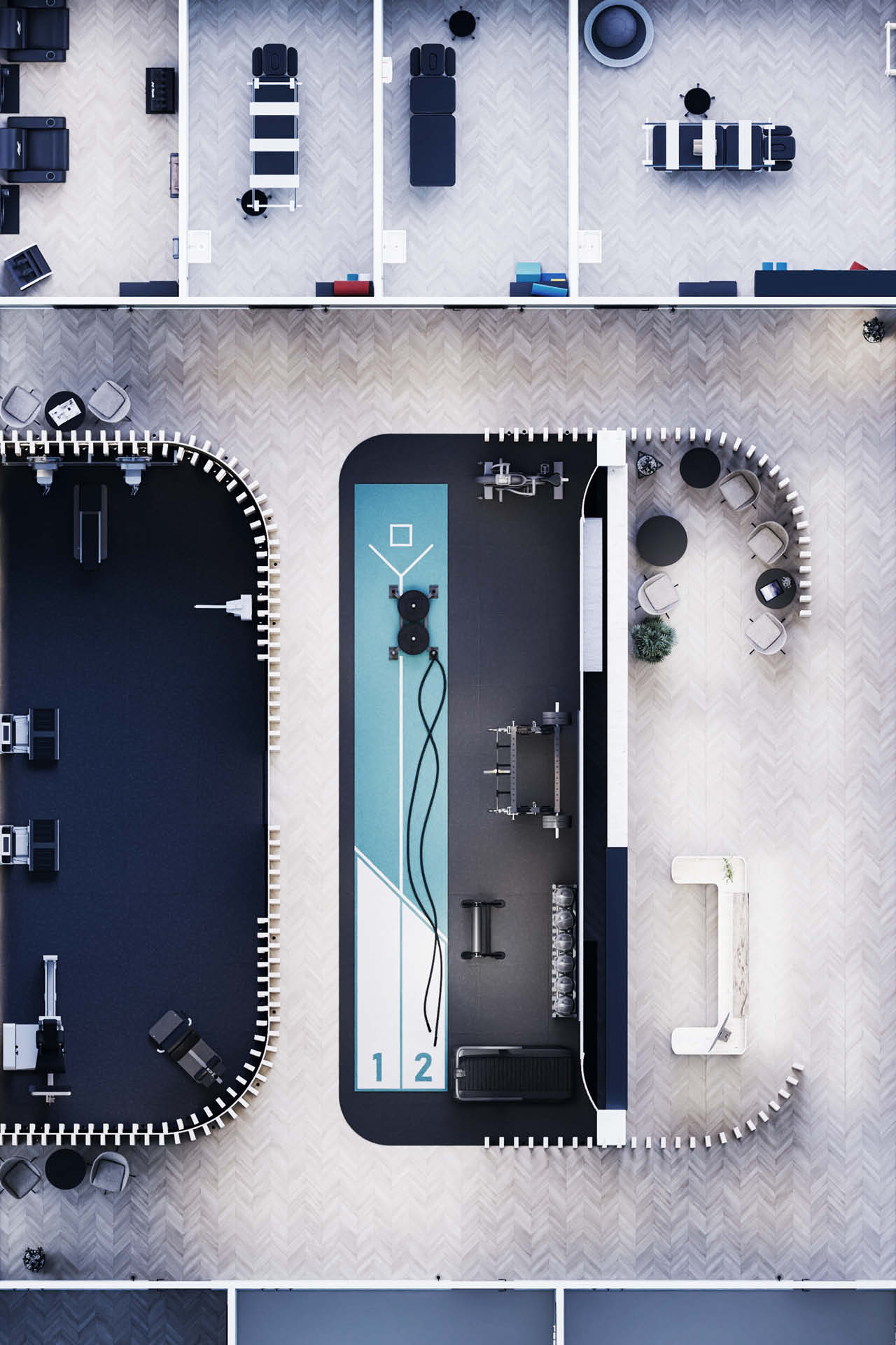 Wir entwickeln maßgeschneiderte 3D-Designs und eine individuelle Ausstattung für deine Trainingseinrichtung. Vom Rig, Rack und TRX-System über Hyrox-Areas und Functional Training Zones bis hin zu Cardio-Bereichen und Recovery-Zonen – wir bieten Lösungen für jedes Konzept.